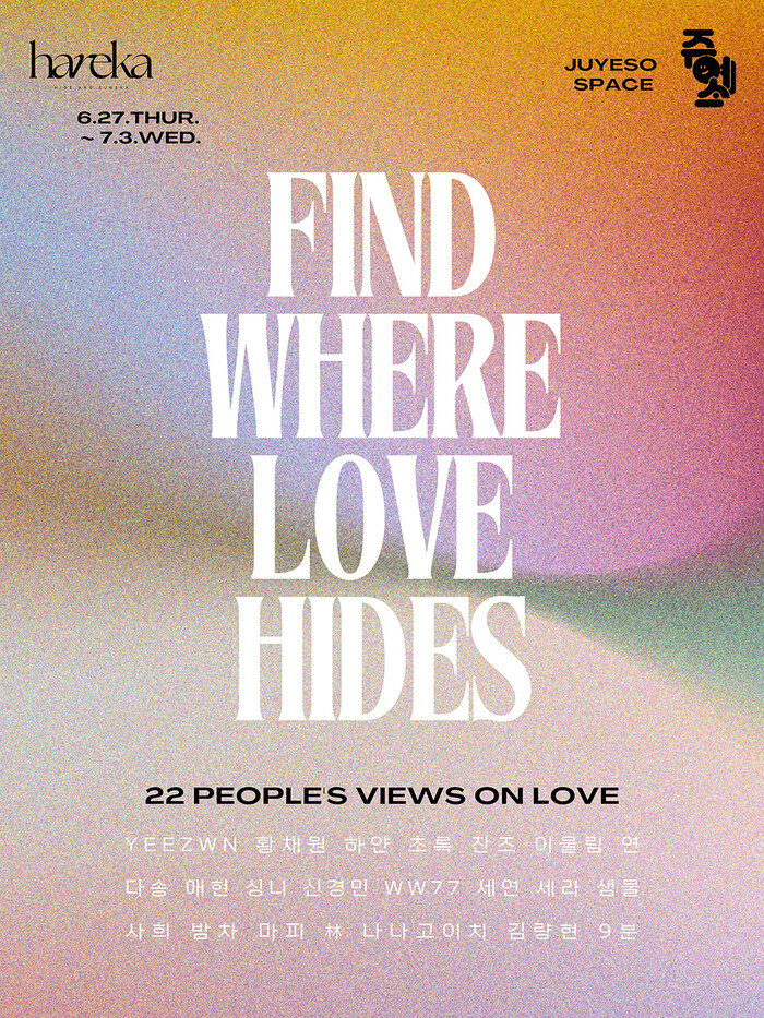 여성 창작자 지원 에이전시형 프로젝트 ‘하이드앤유레카’가 사진작가 22인과 함께 사랑에 관한 시선을 담은 단체 사진전 ‘Find Where Love Hides’를 개최한다고 20일 밝혔다.