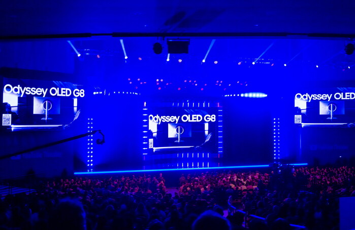 | ▲ 삼성전자가 북미 최대 온오프라인 게임쇼 '서머 게임 페스트'에서 게이밍 모니터 신제품 '오디세이 OLED G8'의 출시를 알리고 있다.(사진=삼성전자 제공) |