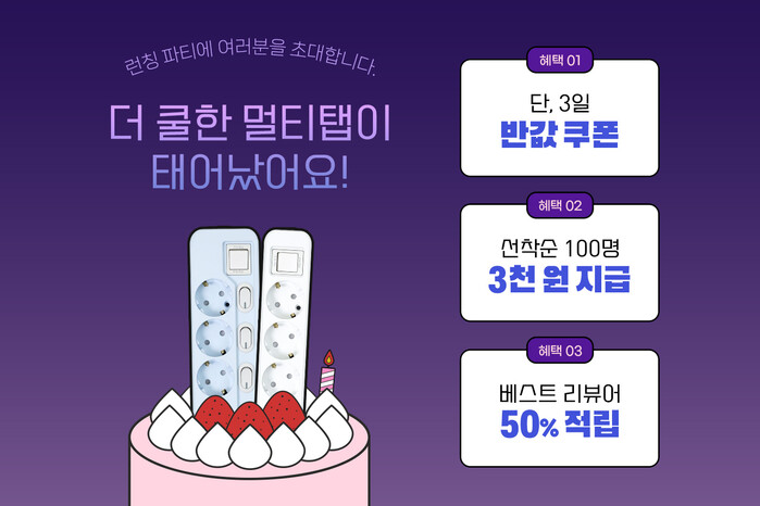 아이정 관계자는 "이번 신제품에는 기존에 없던 신기술이 적용되어, 이로 인해 생소하게 느껴질 수 있는 고객분들에게 더쿨한 멀티탭을 알리고자 역대급 프로모션을 기획했다"고 설명했다.