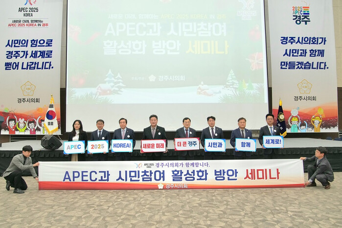 이동협 경주시의회 의장은 “연말의 바쁜 일정에도 세미나에 참석해 주신 많은 시민분들께 진심으로 감사드린다.”면서 “이번 세미나가 2025 APEC 정상회의의 성공적인 개최를 위한 힘을 모으고, 경주가 새롭게 도약하는 계기가 되길 기대한다.”고 말했다.