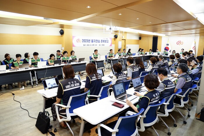 이를 위해 구는 최근 구청 창의홀에서 문헌일 구청장 주재로 부구청장, 국‧과장, 관계 공무원 등 40여 명이 참석한 가운데 2023년 을지연습 준비보고회를 열었다.