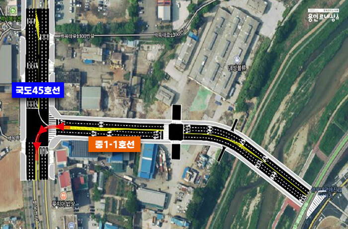 | ▲ 용인특례시 '중1-1호' 임시개통 기간동안은 국도 45호선과 연결되는 구간에서 좌회전 진입이 통제된다 |