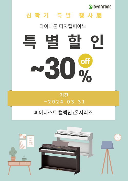 [시민일보 = 이창훈 기자] 디지털피아노 국내 전문 제조 업체 다이나톤은 2024년 신형 피아니스트컬렉션S 시리즈 (SLP-450, SLP-460) 의 신학기 특별 할인행사를 진행 중이다.