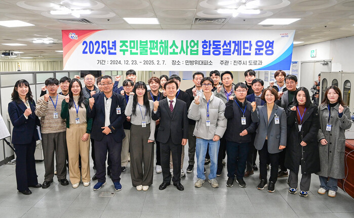 진주시가 2025년도 건설사업의 신속 집행과 실시설계 용역비 절감을 위해 이달 23일부터 내년 2월 7일까지 읍·면·동 주민불편해소사업을 위한 자체 합동설계단을 운영한다.