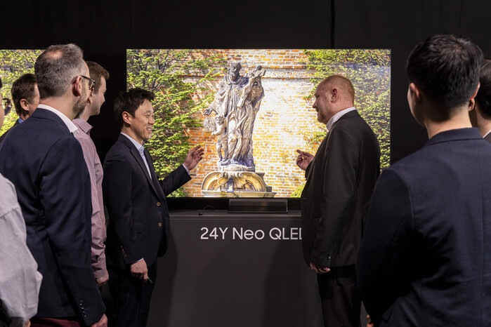 | ▲ 지난 20일(현지시간) 독일 프랑크푸르트 '2024 유럽 테크세미나'에서 참석자들이 삼성전자의 2024년형 Neo QLED 8K 신제품을 살펴보고 있다.(사진=삼성전자 제공) |