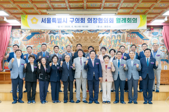 [시민일보 = 이대우 기자] 서울 강남구의회(의장 이호귀)가 최근 봉은사에서 ‘서울시 구의회 의장협의회 6월 월례회의(이하 월례회의)’를 개최했다.