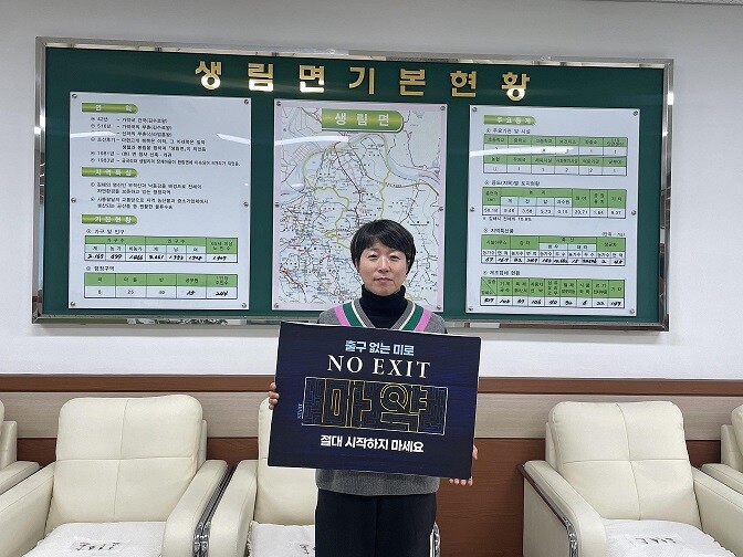 | ▲ 배미자 김해시 생림면장 마약 근절 캠페인 NO EXIT 동참)사진 |