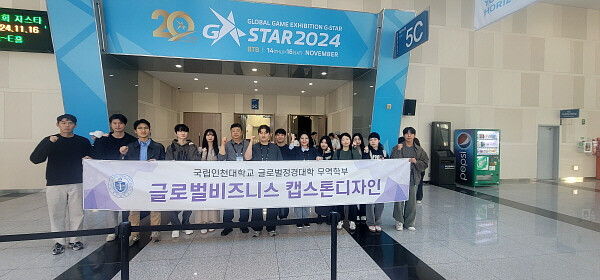 [인천=김형만 기자] 인천대학교 글로벌 정경대학(무역학부 및 대학원 관광컨벤션엔터테인먼트학과)의 박영은 교수와 무역학부의 ‘글로벌 비즈니스 캡스톤디자인’ 교과목의 수강 학생들 (김미림, 김민호, 김형진, 박대연, 박유나, 박은정, 이성민, 송채린, 신민아, 최철규, 피재훈, 황성윤 이상 12명)은 국내 최대 게임쇼인 2024년 제20회 부산 G-STAR게임쇼에 산학협력기업인 ㈜애니듀 (대표: 이진식, 본부장: 이동섭)와 함께 참가해 B2B관 부스 운영 활동 및 B2C관 활동을 진행했다.