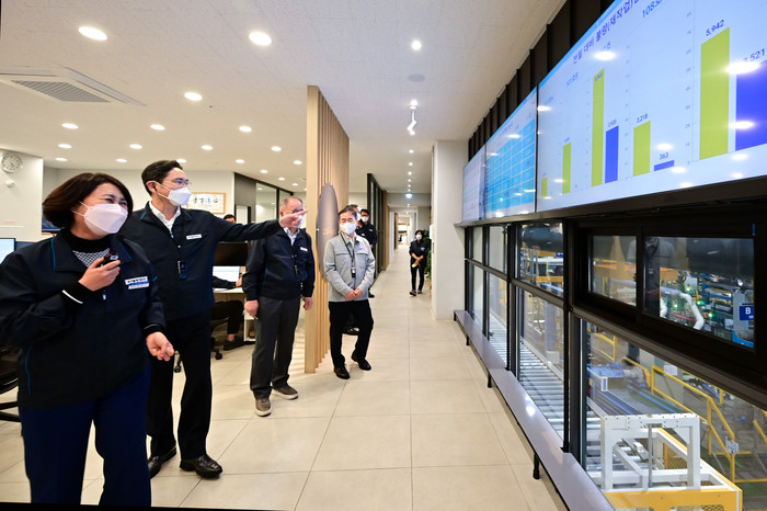이 회장은 지난 10월27일 취임 후 첫 현장 경영 행선지로 광주지역 협력회사를 찾은 데 이어, 이번에는 삼성전자로부터 스마트공장 구축 지원을 받은 부산 소재 중소기업의 제조 현장을 방문했다.
