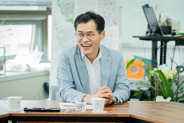 | ▲ 집무실에서 살고싶은 도시 살기좋은 양천의 미래 50년 모습을 구상하며 밝게 웃고 있는 이기재 양천구청장.(사진=양천구청 제공) |