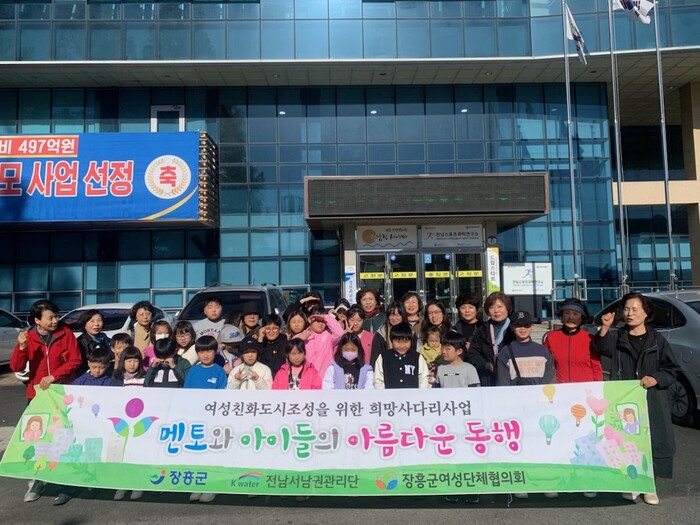 군민지원 희망사다리 사업은 K-water 전남서남권지사의 지원을 받아 다문화가정 정착지원 환경개선 사업, 사랑의 생필품 전달, 저소득층 밑반찬 지원 등을 추진하는 사업으로, 장흥군여성단체협의회와 K-water 전남서남권지사가 업무협약을 맺고 매년 추진하고 있다.