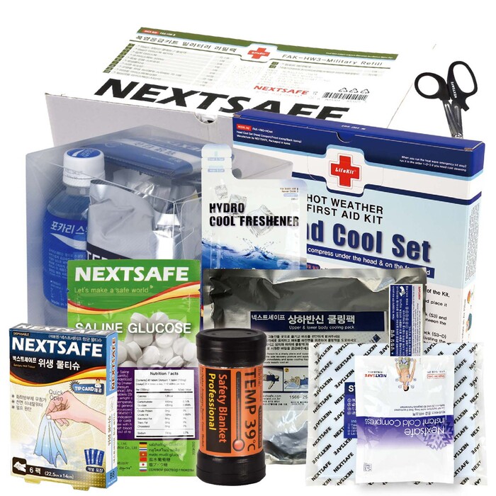 ㈜넥스트세이프 관계자는 “안토니우 구테흐스 유엔 사무총장은 지구 온난화 시대가 끝나고 지구가 끓는 시대가 도래했다고 말했다. 이에 폭염은 더욱 심각해질 것으로 보이며, 말 그대로 ‘더운 수준’이 아니라 ‘재앙’의 수준까지 이르렀다. 이에 국민들의 안전을 위해 폭염응급 시 적절한 응급 처치를 할 수 있는 키트를 선보여왔으며, 기존에 폭염응급키트는 사용 후 리필이 어려웠지만 이번 신제품은 사용했던 키트를 완제품으로 다시 보관할 수 있도록 리필 가능한 제품들로 구성했다”며 “수량에 따라 10-20%의 할인을 적용하여 공급하고 있으며, 산업체, 기관, 군, 단체 등 리필업체 등록 시 5% 추가 할인을 지원하고 있다”고 전했다.