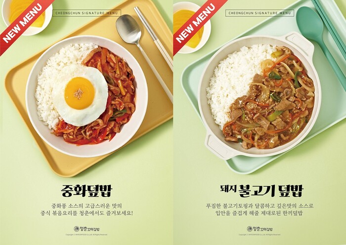 청춘꼬마김밥에서 처음으로 선보이는 돼지불고기덮밥과 중화덮밥은 11월 17일부터 전국 청춘꼬마김밥 매장에서 만나볼 수 있다. 청춘꼬마김밥은 꼬마김밥 메뉴로 간단하게 먹고 포장하기 좋은 메뉴로 고객의 호응을 얻은 바 있으며, 신메뉴 덮밥 2종이 출시함으로써 고객들에게 다양한 메뉴를 제공할 수 있게 되었다.
