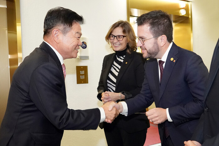 | ▲ 페레 아라고네스 카탈루냐 주지사와 악수하는 이필형 동대문구청장(왼쪽) |