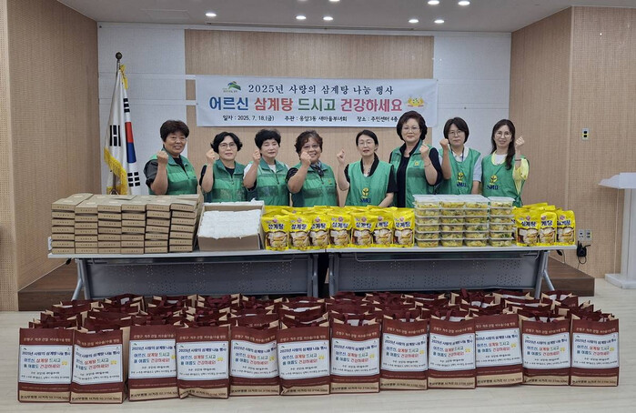 새마을부녀회는 이번 행사를 통해 지역내 홀몸노인 100명에게 포장 삼계탕, 백김치 및 생필품을 전달했다.