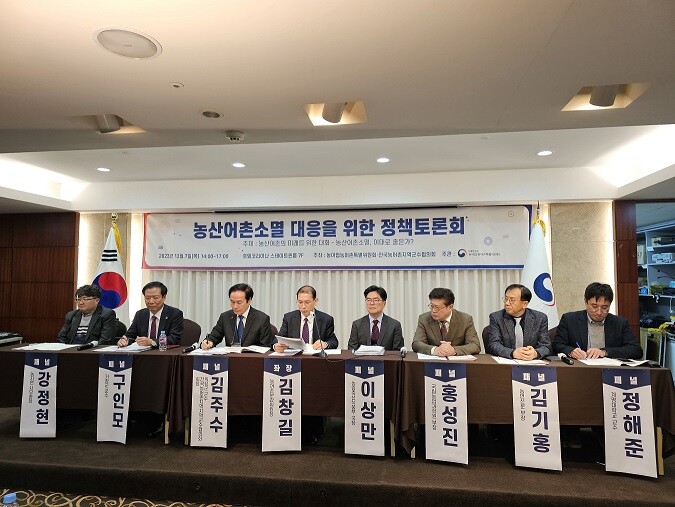 [부산=최성일 기자] 대통령소속 농어업.농어촌특별위원회(이하 농어업위, 위원장 장태평)는 12월 7일(금) 호텔코리아나(서울 중구)에서 김창길 농어촌분과위원장 주재로 농산어촌소멸 대응을 위해 전국농어촌지역군수협의회(이하 협의회, 회장 김주수, 경상북도 의성군수)와 공동 정책토론회를 개최하였다.