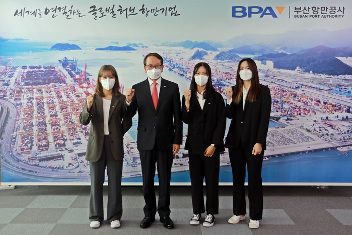 부산항만공사(BPA, 사장 강준석)는 우수한 선수 영입을 통한 전력보강으로2022년도 국내외 제패에 나선다. 신규 선수로 광주체고 김은유(19), 문향고 김미수(19), 호산고 김언지(19) 3명의 선수를 영입하고 3일 부산항만공사 본사에서 임용장 수여식을 가졌다.