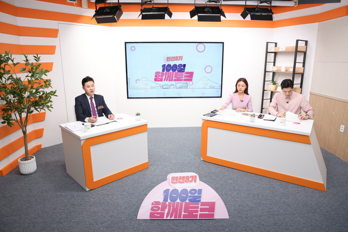 도봉구가 최근 유튜브 ‘도봉봉TV’ 채널을 통해 민선8기 100일을 맞아 구민과 소통하는 방송 '민선8기 100일 함께토크'를 진행했다. 사진은 오언석 구청장(왼쪽)이 민선8기 100일 함께토크를 진행하고 있는 모습. (사진제공=도봉구청)