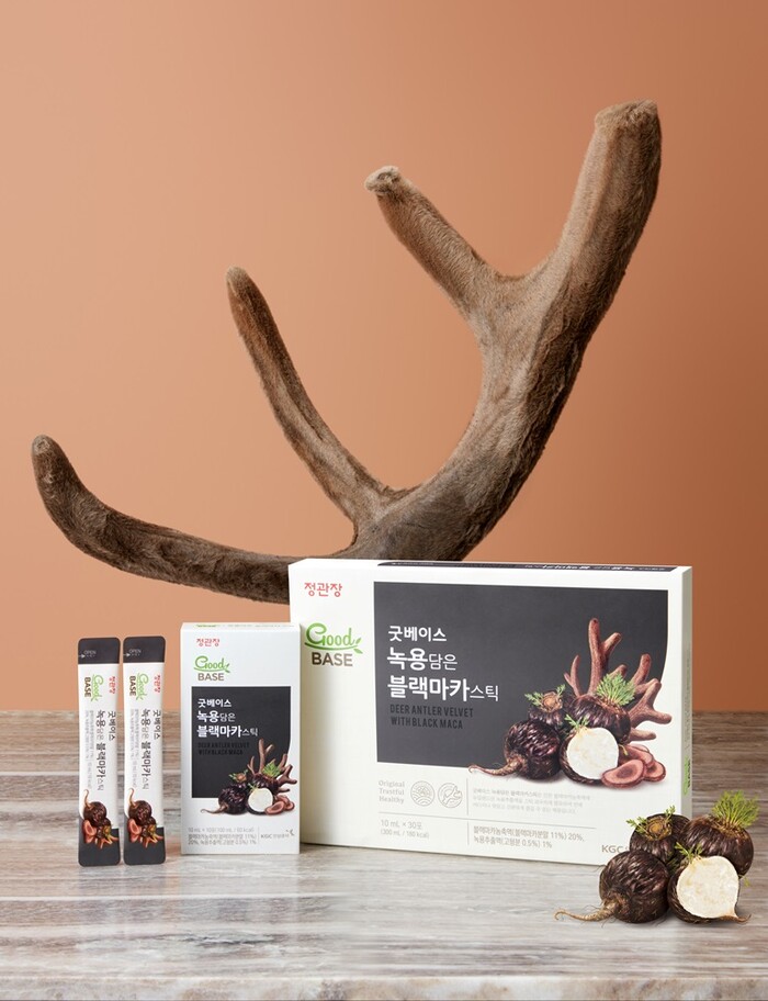 KGC인삼공사의 자연소재 건강식품 브랜드 굿베이스가 세계 유명 주산지에서 자란 고품질 원료를 엄선해 만든 ‘녹용담은 블랙마카 스틱’과 ‘홍삼담은 엘더베리 스틱’ 신제품 2종을 출시했다.