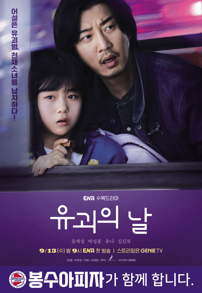 ENA 새 수목드라마 '유괴의 날’은 어설픈 유괴범과 11살 천재 소녀의 세상 특별한 공조를 담은 코믹 버디 스릴러다. 윤계상, 박성훈, 김신록, 유나가 주연을 맡았다. 정해연의 소설 《유괴의 날》을 원작으로 하여, 방영 전부터 큰 주목을 받고 있다.