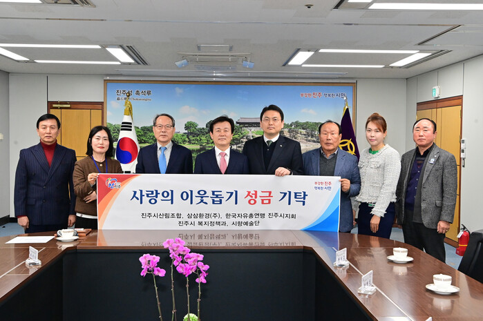 이번 기탁식에서 진주시산림조합(조합장 정덕교)에서 성금 1,000만 원, 삼삼환경(주)(회장 박명식)에서 성금 500만 원, 한국자유총연맹 진주시지회(지회장 차경득)에서 성금 300만 원, 진주시 복지정책과 생활보장팀에서 ‘2024년 의료급여사업 평가’우수지자체 포상금 250만 원, 시향예술단(단장 강명근)에서 성금 100만 원을 기부하며, 지역사회 소외된 이웃을 위해 사용해 달라는 기부 의사를 밝혔다.