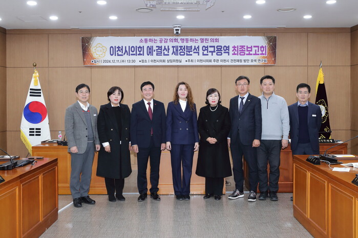[시민일보 = 민장홍 기자] 경기 이천시의회가 최근 진행된 ‘이천시 건전재정 방안 모색 연구회’를 마무리함에 따라 2025년도 이천시 본예산안 심의에 눈길이 쏠린다.