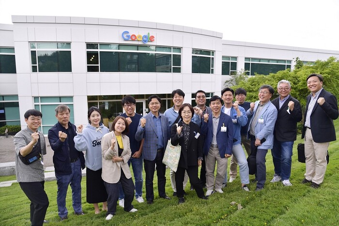 | ▲ 김광진 광주광역시 문화경제부시장과 광주시대표단이 지난 23일 오후(현지시간) 미국 시애틀 구글오피스를 찾아 이지환 시애틀 구글오피스 소프트웨어 엔지니어 등 연구자들과 광주와 인공지능 관련 협업방안에 대해 논의 한 뒤 기념촬영을 하고 있다./광주광역시 제공 |