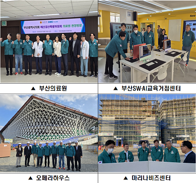 이날 방문한 사업장은 부산의료원, 부산SW‧AI교육거점센터, 부산온라인학교, STEM 빌리지, 오페라하우스, 마리나비즈센터 총 6개 사업장이다. 각 현장에서 사업 추진 경과와 향후 계획에 대한 보고가 진행되었으며, 관련 사업 현황과 진행 상황 등에 대한 예결위 위원들의 질의응답이 이어졌다.