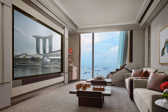 마리나 베이 샌즈의 최상위 객실인 체어맨 스위트(Chairman Suite)에는 삼성전자의 마이크로 LED 기술력이 집약된 초고화질 디스플레이 '더 월(The Wall)'을 설치했다.