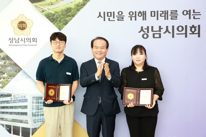 [성남=오왕석 기자] 성남시의회(의장 이덕수)는 시의 숨은 재산을 발굴한 유공 공무원인 회계과 재산관리팀 안성재 주무관과 이경미 주무관에게 의장 표창을 수여했다.
