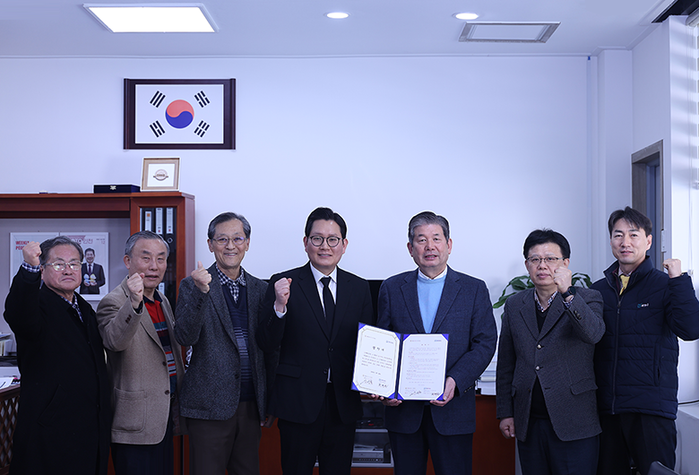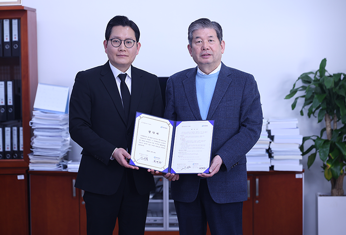 | ▲ 인천환경공단 이사장실에서 진행된 협약식 후 기념촬영. (좌측부터) 신선철 예담라이프 대표와 최계운 인천환경공단 이사장 |