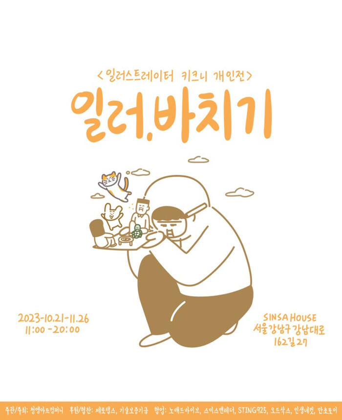 [시민일보 = 이창훈 기자] 키크니 첫 개인 전시회인 '일러, 바치기'가 오는 11월 26일까지 서울 강남구 신사하우스에서 개최된다.
