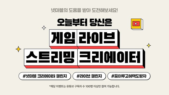 이번에 처음으로 진행하는 '넷마블 라이브 스트리밍 챌린지'는 실시간 게임 방송을 고민 중인 인플루언서들을 지원하기 위해 마련된 프로그램이다.