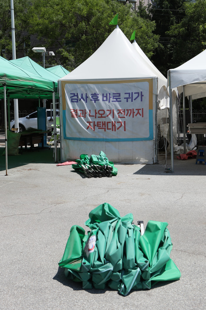 1일 경기도 의정부시 용현동 코로나19 임시선별진료소에서 천막이 철거 후 정리되어 있다. 코로나19 확진자 감소에 따라 이날부터 코로나19 생활치료센터와 임시선별검사소의 운영이 중단된다.