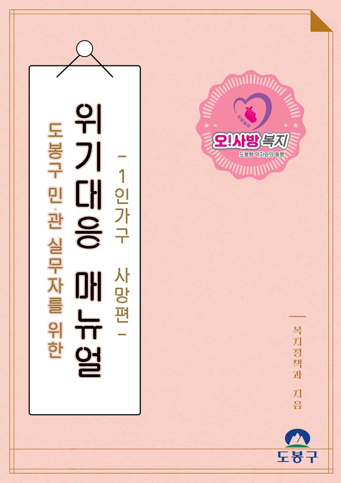 [시민일보 = 여영준 기자] 서울 도봉구(구청장 오언석)는 1인가구 사망 등 현장 위기상황에서 민관실무자들의 발빠른 대처를 돕는 ‘도봉형 위기대응’ 매뉴얼을 발간했다고 27일 밝혔다.