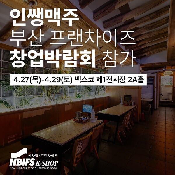 인쌩맥주 관계자는 “상대적으로 프랜차이즈 업체 정보를 얻기 어려운 지방 거주자들을 위해 직접 자세한 이야기를 전달하고자 부산창업박람회에 참여하게 되었다. 폐업률이 높은 주점 시장에서 전국 200호점 이상의 가맹점을 운영 중인 인쌩맥주의 노하우가 궁금하다면, 이번 기회를 놓치지 않기 바란다”고 말했다.
