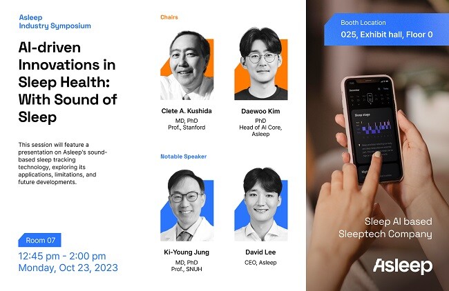 에이슬립은 또 행사 기간 중 스탠퍼드 수면센터 쿠시다 교수와 서울대병원 신경과 정기영 교수, 에이슬립 이동헌 대표와 인공지능(AI) 총괄 김대우 이사 등이 참석한 가운데 수면 산업 심포지움을 주관했다.