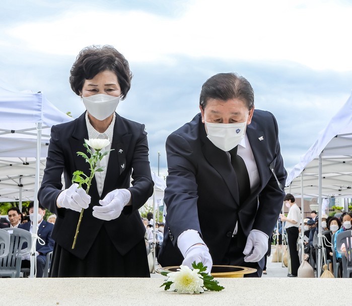 이날 추념식에서는 청소년오케스트라의 식전행사를 시작으로 국기에 대한 경례, 애국가 제창이 이어졌으며 참석자들은 오전 10시, 추념 사이렌에 맞춰 전 군민과 함께 묵념의 예를 갖췄다.