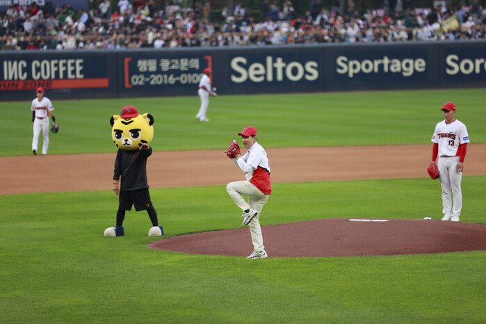 [보성=황승순 기자]4월 30일 김철우 보성군수가 제47회 보성다향대축제 성공 기원을 위해 광주 기아 챔피언스 필드에서 열린 기아 타이거즈 대 케이티 위즈 프로야구 경기에서 안정된 시구하고 있다.