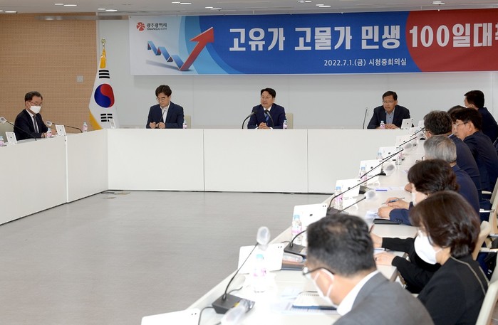 [광주=정찬남 기자] 강기정 광주광역시장이 1일 오후 시청 중회의실에서 열린 민생분야 현안토론에 참석해 관련 정책 등을 논의하고 있다./광주광역시 제공