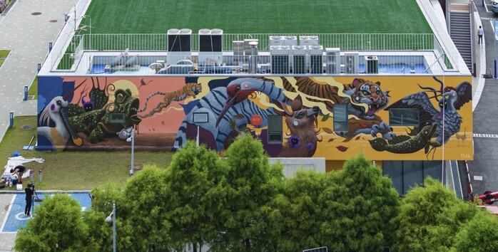 내셔널 지오그래픽 탐사대에 아티스트로 참여해 활동하며 더욱 유명해진 덜크는 세계자연유산인 신안 갯벌과 그곳에서 자생하는 생물들, 특히 한국의 멸종위기 동물들에서 영감을 받아 노랑부리저어새, 동박새, 호랑이 등을 생생하고 강렬한 컬러로 담아냈다. KCC페인트의 풍부하고 깊은 컬러와 바닷바람에도 견뎌내는 내후성은 작가들의 작품을 담아내는데 큰 역할을 했다.