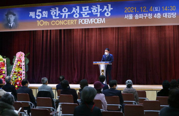 이 의장은 축사를 통해 “송파에서 태어나고 자라서인지 송파구 대표 문화예술인인 고(故) 한유상 선생님이 친숙하면서도 뜻과 업적을 생각하면 항상 존경심을 가지고 있었다.”며 “한유성문학상이 우리나라 문학계의 최고의 문학상으로 자리매김하여 많은 문학계의 수작이 배출되길 기원한다.”고 말했다.