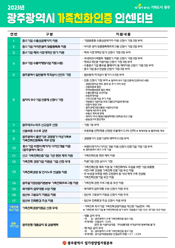 | ▲ 가족친화인증 인센티브 안내 이미지 / 광주광역시 제공 |