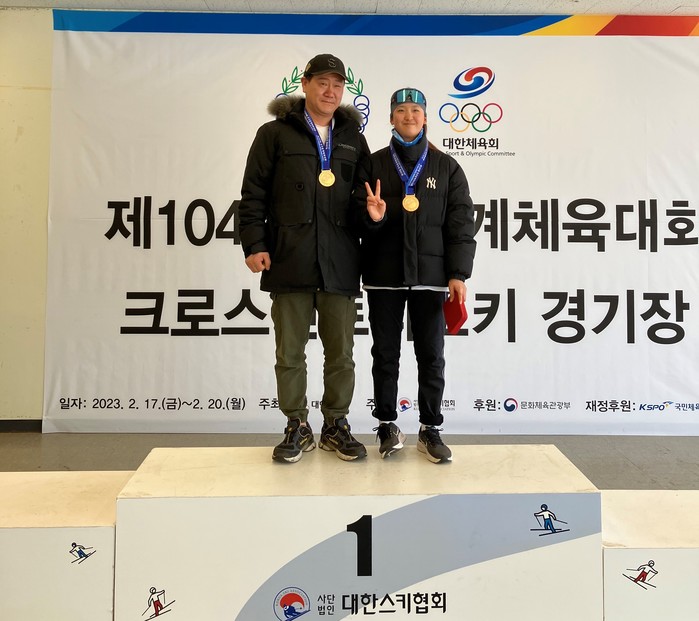 | ▲ 조다은(화순제일중 1년.우측)은 17일, 크로스컨트리 여자16세 이하부 클래식 5km에서 금메달(18:05.9)획득(출처=전남도체육회) |