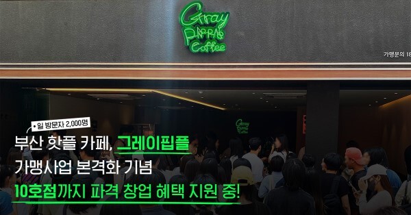 한편, 그레이핍플은 창원, 포항, 부산 지역에 추가 오픈을 앞두고 있으며, 최근 오픈한 2호점 울산삼산점을 시작으로 본격적인 매장 확대에 나선다. 창업혜택에 대한 자세한 사항은 공식 홈페이지 또는 전화 문의를 통해 확인할 수 있다.