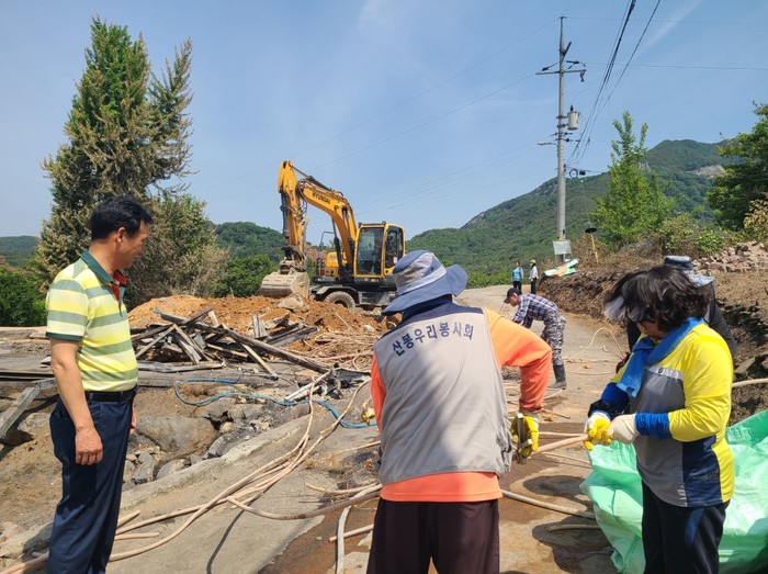 산봉우리봉사회는 당일 포클레인, 2.5톤 트럭 등 중장비를 동원하여 화재 현장 복구 작업 및 주변 환경 정리를 실시했으며 향후 후원물품 지원 등을 통해 든든한 이웃으로서의 역할을 다 한다는 계획이다.