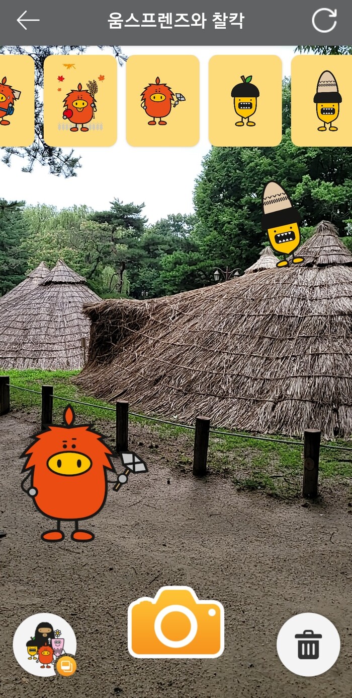 ‘나만의 도슨트’에서는 서울 암사동 유적 캐릭터 중 하나인 빗토가 선사시대의 생활상을 쉽고 재미있게 설명해 줄 뿐 아니라 참여자가 퀴즈와 게임을 완료하면 캐릭터 카드를 준다. 이렇게 모은 캐릭터 카드는 ‘움스프렌즈와 찰칵’에서 해당 캐릭터와 함께 사진을 찍을 수 있도록 해 이색 재미를 더한다.