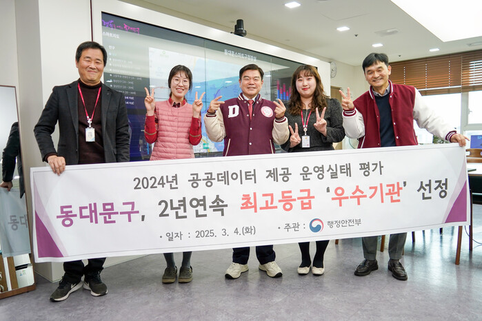 [시민일보 = 이대우 기자] 동대문구(구청장 이필형, 이하 ‘구’)가 행정안전부 주관 ‘2024년 공공데이터 제공 운영 실태 평가’에서 최고등급인 ‘우수기관’으로 2년 연속 선정됐다.