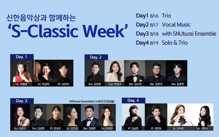 ‘S-Classic Week’ 연주회는 ‘천원의 행복’ 프로그램의 일환으로 신한은행은 신한음악상 역대 수상자들이 연주에 참여하는 이번 연주회를 정례화해 나눔을 확산하고 ESG-메세나 사회공헌을 실천할 계획이다.