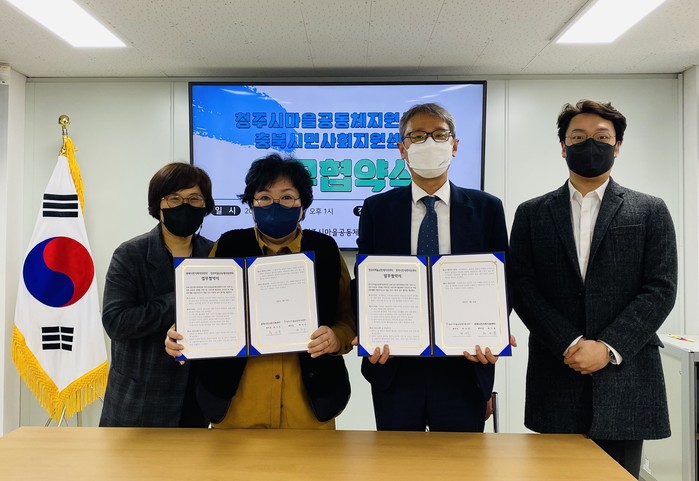 청주시마을공동체지원센터(센터장 변지숙)는 지난 16일 시민사회 활성화와 주민주도의 마을공동체를 만들기 위해 충북시민사회지원센터(센터장 류지봉)와 업무협약을 체결했다.